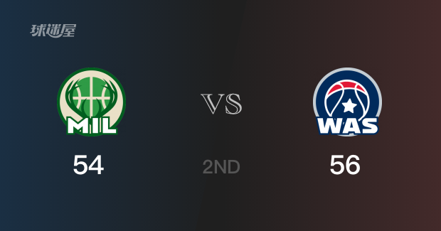 NBA常规赛:半场结束,奇才以56-54领先雄鹿,基斯珀特15分2篮板