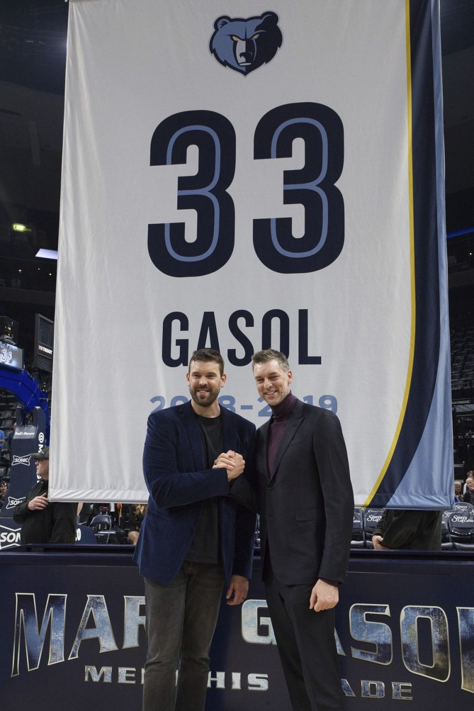 在赛后,灰熊为马克-加索尔举办了球衣退役仪式,马克-加索尔的33号球衣悬挂在灰熊队球馆上空,