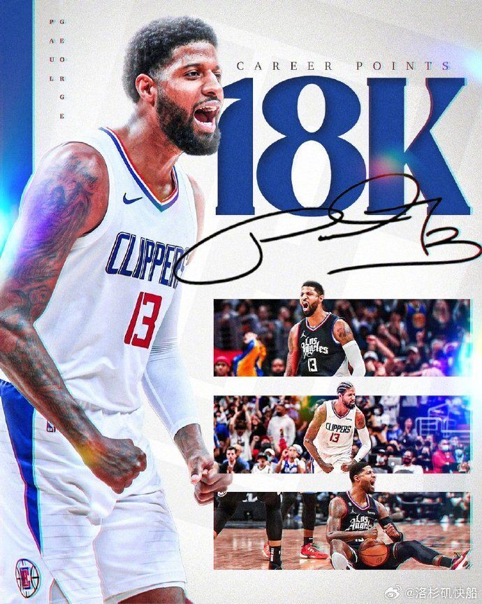 乔治达成生涯18000分里程碑,也是现役唯七名球员拥有至少18,000分、5,000个篮板和3,000次助攻球员。