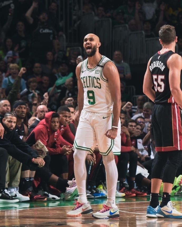 凯尔特人全队6人得分上双大胜复仇,塔图姆贡献23+10+10的三双数据,季后赛生涯首次得到三双,引领全队打出团队攻势,其余5人得分上双,分别是布朗17分8篮板3助攻、波尔津吉斯18分4篮板、霍福德10分、豪泽12分。热火核心巴特勒缺席,全队5人得分上双仍惨败,哈克斯16分4篮板4助攻、约维奇10分6篮板、阿德巴约24分6篮板、希罗11分、赖特17分。
