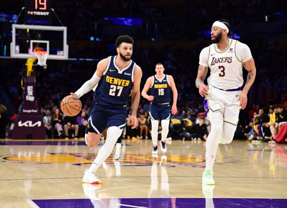 第三节开场詹姆斯面对穆雷完成了一个钉板大帽,浓眉篮下强打约基奇得手后拉开到15分马龙暂停,约基奇直接一个三分回应,约基奇大帽浓眉,波特也来一个三分,湖人失误后波普暴扣缩小到10分,哈姆ATO后被打3-0缩小到7分,文森特关键三分,波特单节拿了15分,不过湖人顶住了这一波反扑带着11分的优势结束前三节。