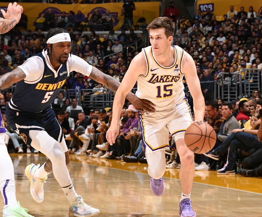 末节开场拉塞尔造犯规两罚全中,沃特森走步,詹姆斯突破得手后分差再到15分,詹姆斯示意挑战但哈姆没有理会掘金一波4-0打停哈姆,詹姆斯关键上篮,拉塞尔打板抛投后再到15分马龙暂停。拉詹空配,拉塞尔三分命中,约基奇助攻稳定战局,詹姆斯造波特进攻犯规,勒布朗后仰,掘金迫近比分又是詹姆斯抢断暴扣 ,掘金缩小到8分又是詹姆斯上篮,还剩43.3秒进入犯规战术。