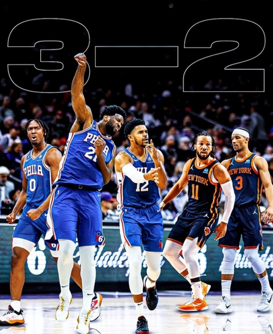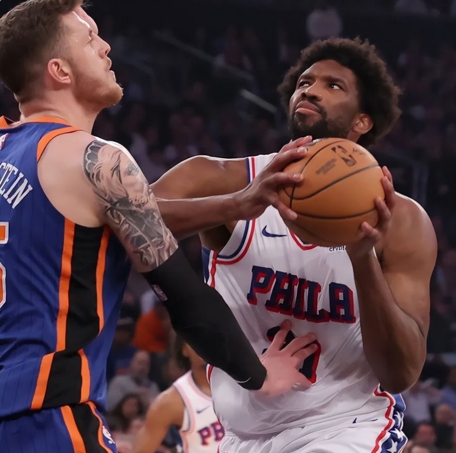加时赛,恩比德一次制造犯规两罚一中,一次完成2+1原本他是功臣,可他防守布伦森送一级恶意,布伦森一个回合拿4分扳平,恩比德又是一个脱手,好在布伦森也失误,不然恩比德又是超级罪人,马克西两罚全中后比赛结束。