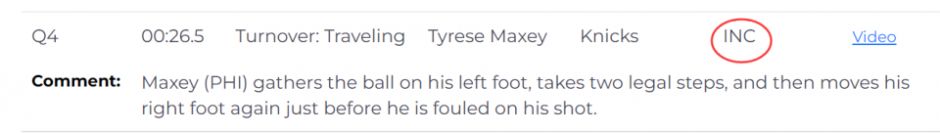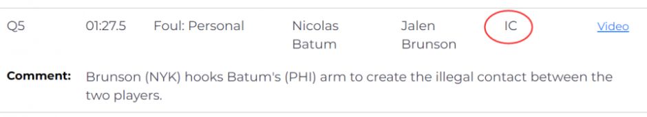 第一次漏判,出现在距离第四节结束还有26.5秒。裁判报告表示,马克西合球后落在左脚,他合理前进了两步后,又再次移动了他的右脚,随后出手三分被犯规,打成3+1。换言之,在对手犯规前,他已经走步了,裁判漏吹,76人获利,尼克斯吃亏。