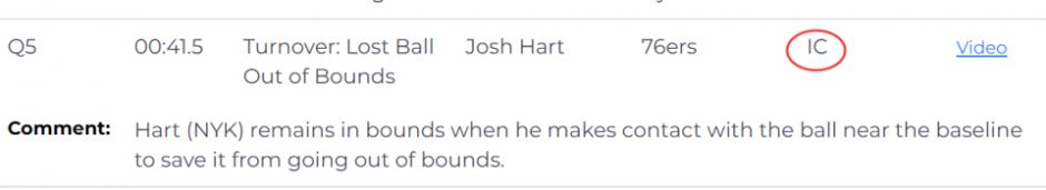 第四次漏判,出现在距离加时赛结束还有41.5秒,哈特在底线救球时,他的人还在界内,裁判判尼克斯出界,这是一次错误的判罚。76人获利,尼克斯吃亏。