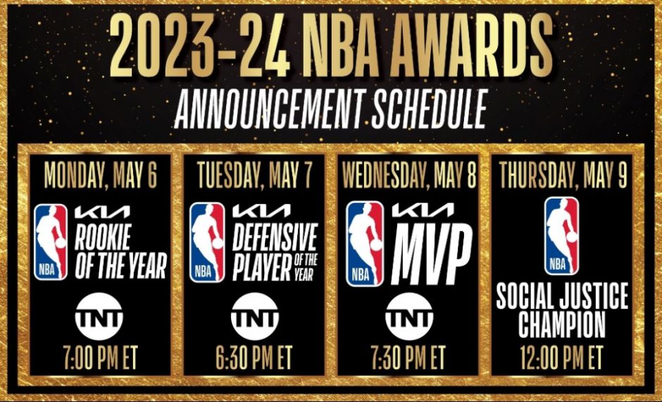 NBA将在北京时间5月8日上午6点30分公布年度最佳防守球员的归属,5月9日7点30分公布常规赛MVP的得主,5月10日12点00分公布社会正义冠军奖的得主。