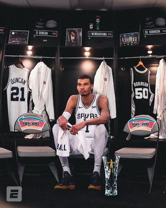 2023年选秀大会上,马刺毫无悬念地用状元签选择了文班亚马。本赛季常规赛,文班亚马出战71场比赛,场均出场29.7分钟,贡献21.4分10.6篮板3.9助攻1.2抢断3.6盖帽,投篮命中率46.5%,三分命中率32.5%,罚球命中率79.6%,其中盖帽排名联盟第一。他还连续当选1月、2月和3月的西部月最佳新秀。