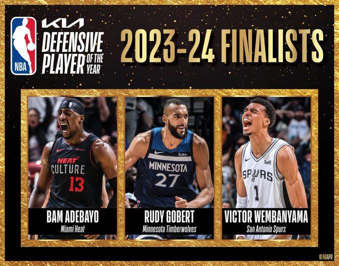 此前,NBA官方公布了这一奖项的三大候选人,除了戈贝尔,还有马刺的状元文班亚马和热火的阿德巴约。数据显示,文班亚马场均21.4分10.6篮板3.6盖帽,盖帽排名联盟第一。阿德巴约场均19.3分10.4篮板1.1抢断0.9盖帽。