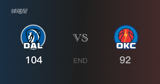 全场比赛,独行侠球员东契奇砍下31分;雷霆球员亚历山大砍下30分。全场结束,独行侠以104-92击败雷霆。