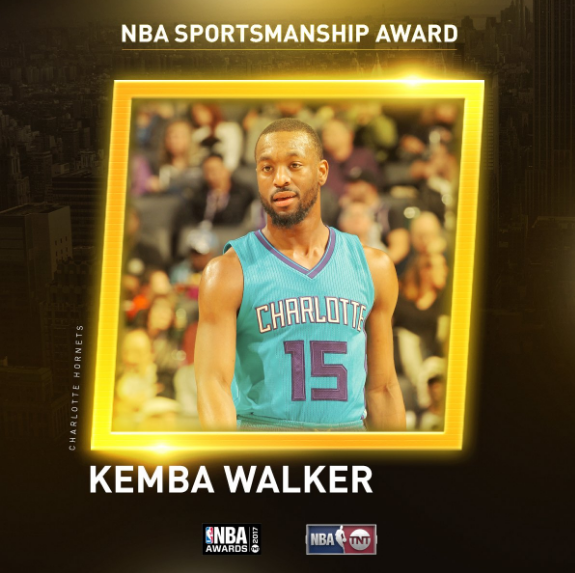24直播网网 6月27日讯 在2016-17赛季NBA颁奖典礼上,黄蜂后卫肯巴-沃克获得体育道德风尚奖。