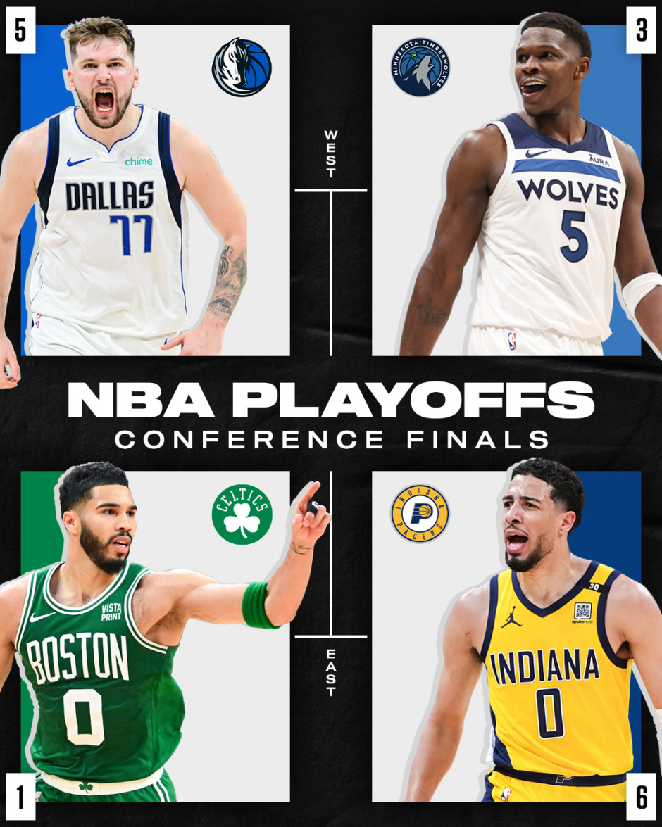 NBA分区半决赛两场抢七已经落幕,步行者终结尼克斯,与凯尔特人会师东部决赛,哈利伯顿率队挑战联盟战绩第一的绿军。森林狼淘汰上赛季的冠军掘金,和独行侠在西部决赛碰面。下面分享2024nba东西部决赛日程