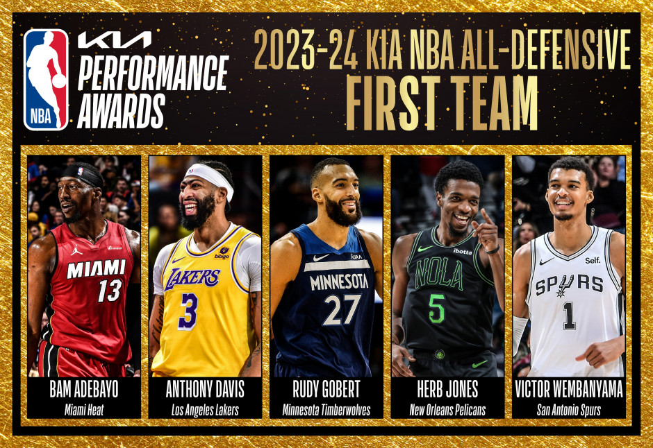 北京时间5月22日,NBA官方公布最佳防守阵容,浓眉、戈贝尔领衔防守一阵;卡鲁索、霍乐迪入选防守二阵。其中,戈贝尔全票入选一阵,文班亚马成为NBA历史首位入选防守一阵的新秀。以下是2023-2024NBA最佳防守阵容名单