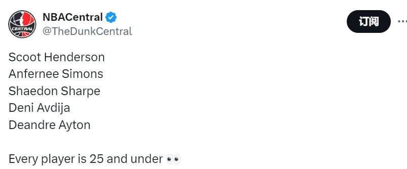 通过这样一笔交易,开拓者打造了一套年轻的核心阵容:亨德森、安芬尼-西蒙斯、夏普、阿夫迪亚和艾顿,所有核心的年龄都不超过25岁。