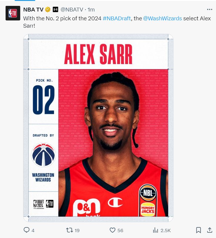 奇才队用榜眼签选中亚历山大-萨尔,萨尔在试训时两次拒绝亚特兰大,他最想去的球队就是华盛顿奇才。