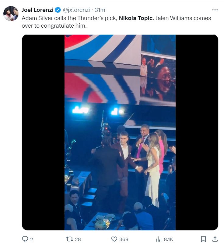 雷霆队记Brandon Rahbar写道:OKC12号签选中了托皮奇,本届选秀最高的天花板球员之一,受伤之前被列为前三名,雷霆可以大力培养他,这是一个绝妙的超值选择。