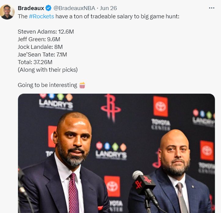 亚当斯、杰夫格林、兰代尔、泰特、1290万中产特例,这五个筹码就是火箭交易的筹码。我个人觉得狄龙应该也是。