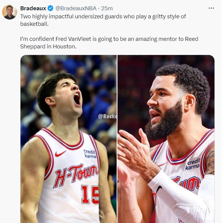 30岁的范弗利特会是谢泼德一个很好的师傅,谢泼德未来是打一号位的,那么如果火箭酝酿交易布克,杰伦-格林的席位就岌岌可危。