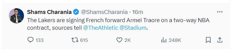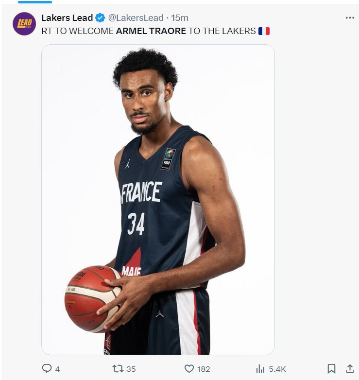 湖人又用双向合同签下了法国前锋阿梅尔-特劳雷。