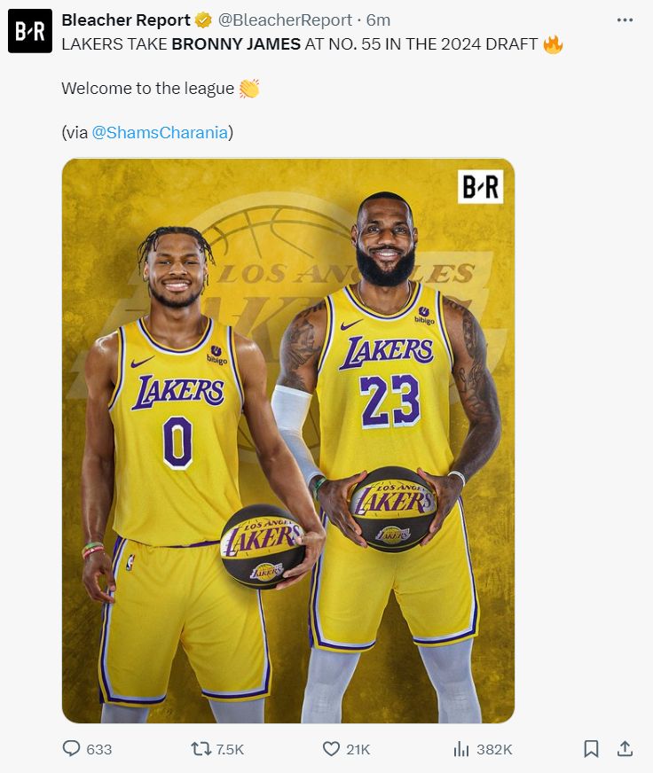 湖人在次轮选秀大会上用55号签选中了勒布朗的儿子布朗尼-詹姆斯,可以说本次选秀大会很圆满,首轮捡漏了顶级投手,次轮选中詹皇儿子。佩林卡并没有放缓补强的脚步。