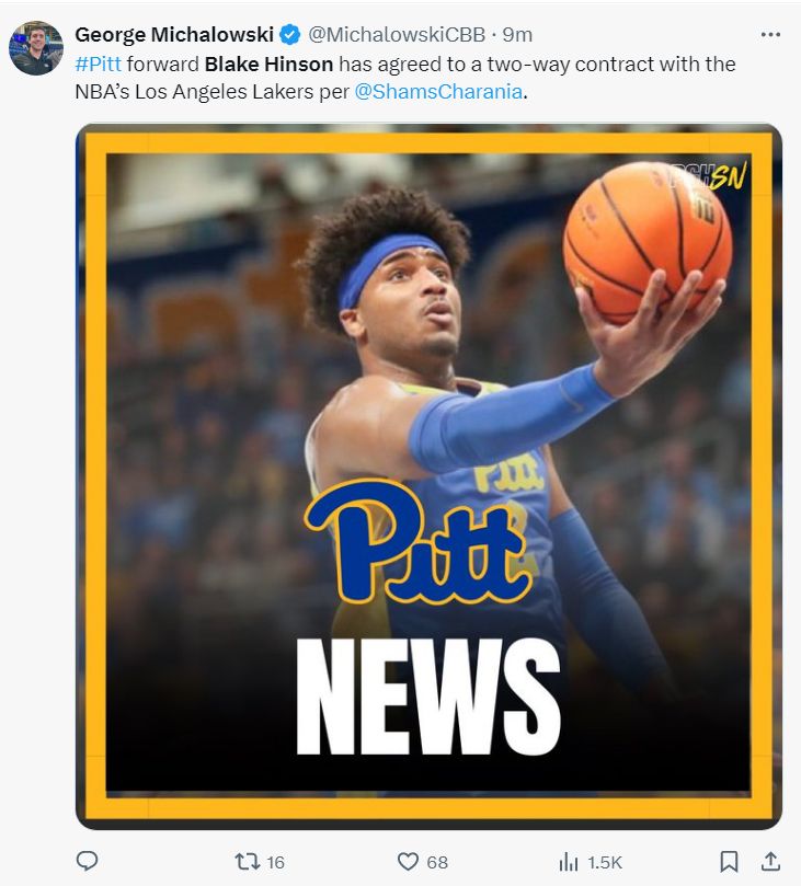 23-24赛季在匹兹堡大学33场比赛命中110个三分球,场均要命中3个三分球,打破了队史单赛季三分命中纪录,是一个很顶级的锋线投手。