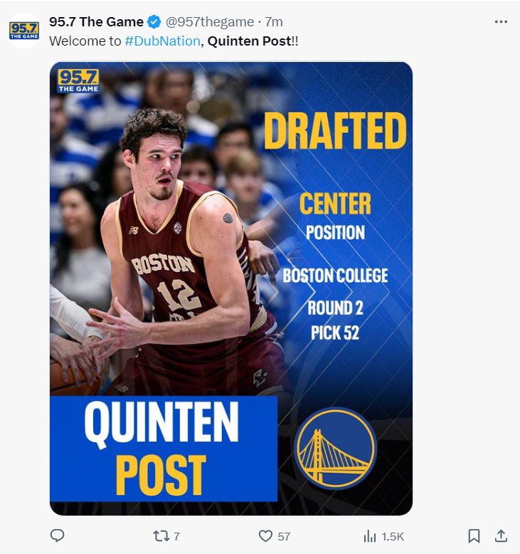 继2018年杰罗姆后首位被选中的波士顿学院的球员,勇士为了选中他不惜回购52号签锁定了薪金空间。