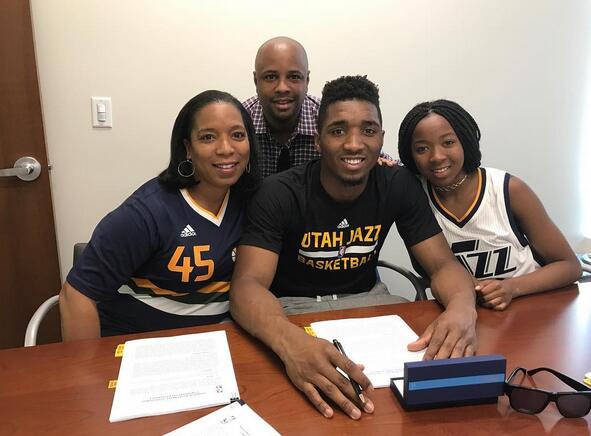 24直播网7月6日讯 今年选秀大会上的爵士第13顺位新秀多诺万-米切尔今日在社交媒体上发布了一张自己签约的照片(见新闻配图)。