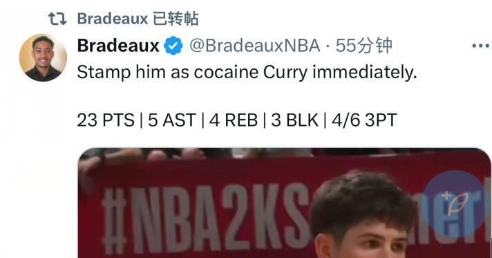 休城记者Bradeaux则连发2条推文,第一条是晒出谢泼德数据并配文写道:“立即将他标记为加强版库里”,第二条是晒出谢泼德LOGO三分视频并写道:“看看这个,火箭真的选中了史蒂芬-库里”。
