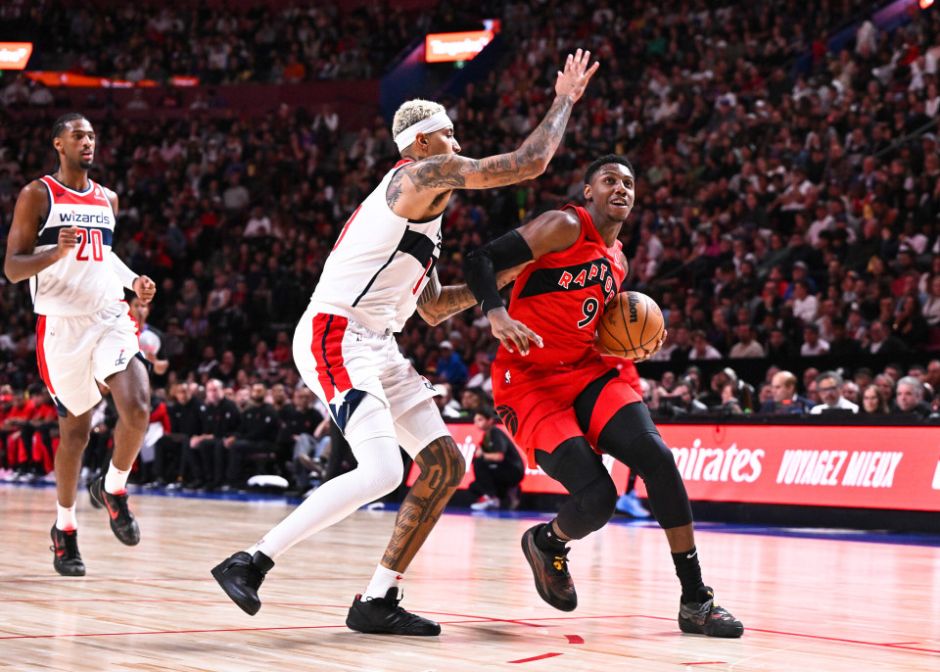 本场比赛在加拿大蒙特利尔进行,猛龙队史名宿卡特到场观战。首节比赛前4分钟,猛龙多点开花打出13-2攻势,早早取得两位数领先优势。猛龙一度被追到18-12仅领先6分,但很快猛龙打出一波14-0攻势,已经取得32-12领先20分巨大优势。奇才略有追分,首节比赛结束猛龙34-16领先奇才18分优势。