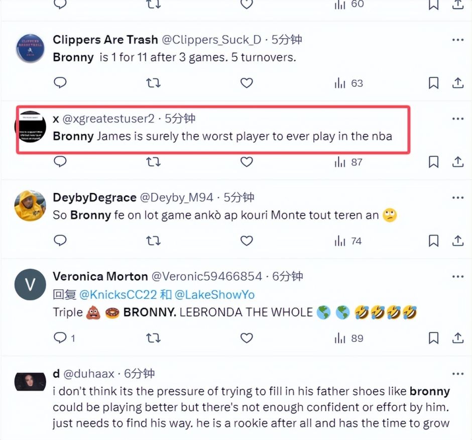 湖人最终赢下了比赛。布朗尼的表现再次遭到质疑。有网友总结布朗尼在过去3场共计11投1中,出现5次失误。也有网友表示:“布朗尼确实是NBA有史以来最差的球员。”