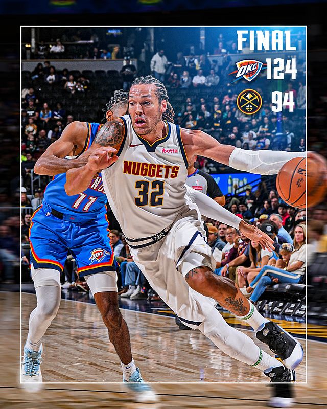 掘金:约基奇、穆雷与威少缺席,小波特15分6篮板,戈登11分5篮板5助攻,纳吉3记三分11分3盖帽,斯特劳瑟12分4助攻,全队5人得分上双。雷霆:亚历山大3记三分19分5助攻,杰伦14分,哈尔滕施泰因11分3篮板3助攻,霍姆格伦8分7篮板,乔4记三分14分,全队6人得分上双。