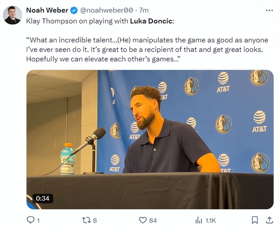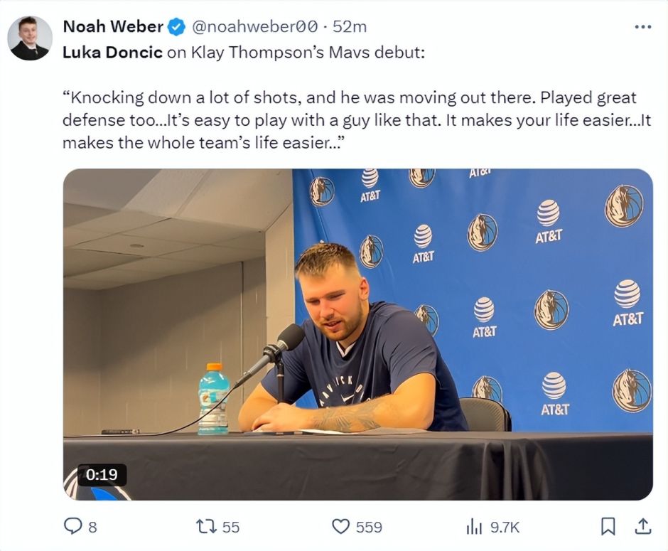 克莱谈到东契奇:多么不可思议的天赋,他操控比赛的水平不亚于我见过的任何球员,而且东契奇长得很帅。很高兴能赢得这场胜利,希望我们能彼此继续提升比赛水平。