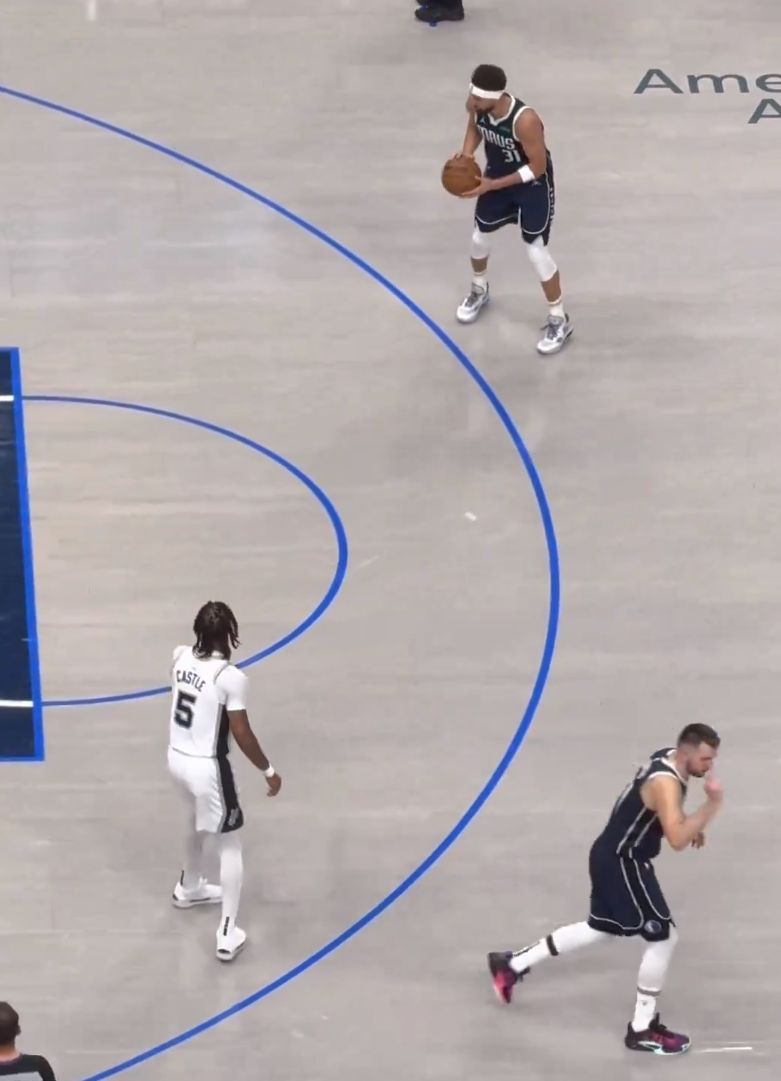 这场比赛东契奇最亮眼的就是分球给克莱,在克莱还没出手时他就提前庆祝了,不过东契奇肚腩凸起也被抓住了。