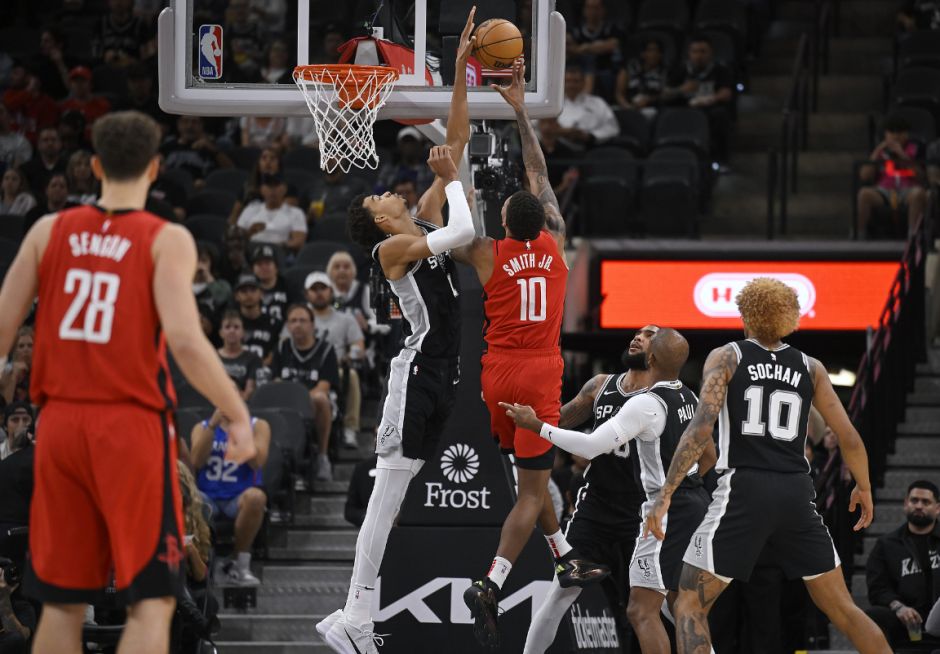 索汉隔扣申京,文班助攻索汉空接隔扣狄龙,索汉单打史密斯一个,索汉单人打停火箭。狄龙单打保罗造犯规稳定局势,史密斯反击造犯规再到14分,文班大帽申京,但马刺反击失误格林暴扣打停马刺,火箭一度拉开到20分,布兰纳姆突然爆发连中三分,火箭领先太明显松懈了,三节打完火箭87-75领先马刺。