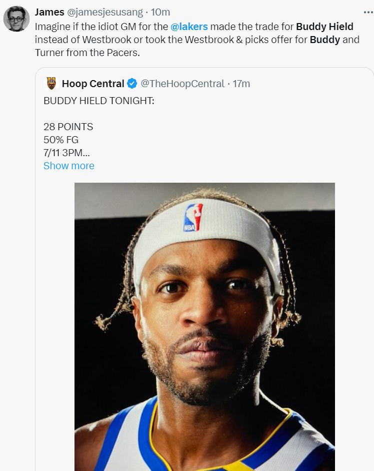 2022年夏湖人本有机会用威少+选秀权换希尔德+布罗格登+特纳。
