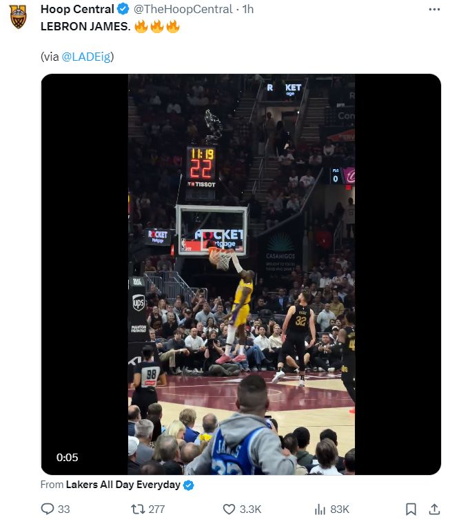 第三节的勒布朗更是炸裂,单节9分钟里6中5+罚球4中4拿到14分3篮板1助攻,三节打完勒布朗26分4篮板3助攻,抬头一看湖人落后20+。