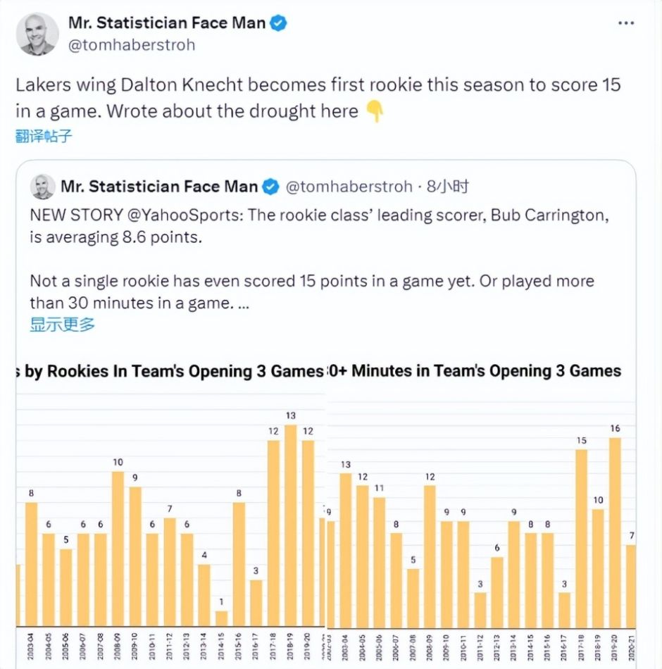 末节轰18分创纪录!湖人23岁菜鸟崛起:又帅又能打当詹眉绝配?