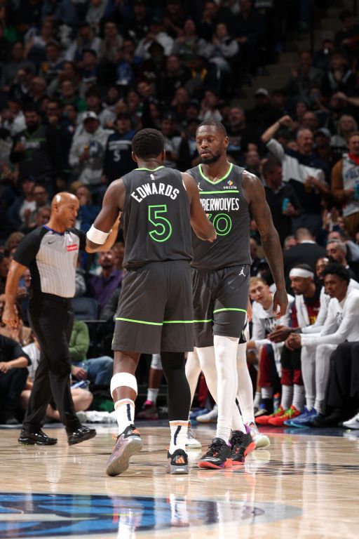 爱德华兹29分7三分,最后时刻命中关键抛射,戈贝尔17+14,最后时刻关键两罚与关键防守,帮助森林狼险胜掘金。