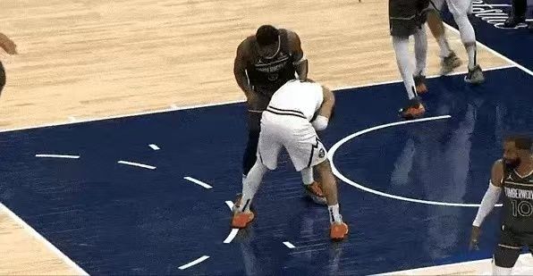 布劳恩隔扣戈贝尔怒吼,戈贝尔搂住布劳恩脖子冲突,双双吃T。