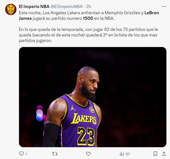 湖人官方祝贺勒布朗-詹姆斯完成常规赛生涯1500场里程碑,但这场比赛勒布朗太难了。