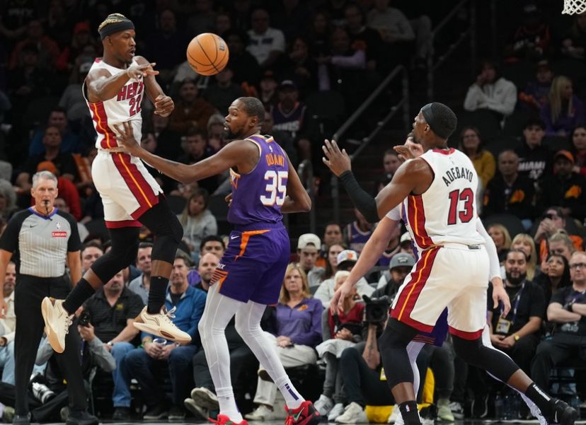 北京时间11月7日,NBA常规赛太阳主场对阵热火,太阳在最多落后15分情况下,杜兰特、布克与努尔基奇三叉戟率队逐步反超比分。双方最后时刻紧咬比分缠斗,杜兰特连续命中关键球,布克关键两罚一中,巴特勒最后一攻不敢投传球希罗未能接住,最终太阳115-112战胜热火豪取6连胜,热火遭遇2连败。