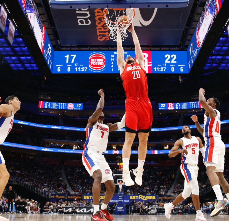 范弗利特终于完成了两个运动战,随着范弗利特的复苏火箭队的攻防也变得给力,伊森与阿门替补登场后迫使活塞三分钟没得分,火箭是一波8-0的小高潮,伊森抢断2+1,阿门抢断反击,活塞的防线被冲散。三节申京22分,坎宁安20分,三节打完火箭72-64领先活塞。
