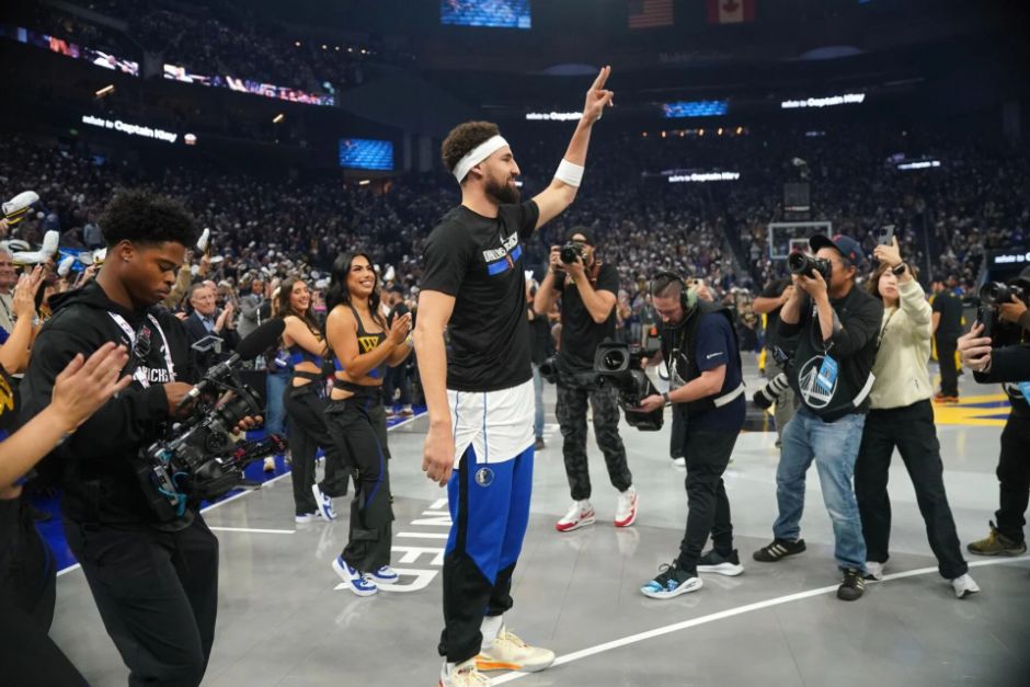 克莱昔日帮助勇士4夺总冠军,如今他首次对阵旧主,也是首次重返大通中心比赛。克莱早早来到球馆为球迷签名,勇士约400名工作人员站球馆通道两侧,向克莱脱帽致敬。原计划库里在赛前对球迷发表讲话欢迎克莱回归,但克莱与库里沟通后取消演讲环节。勇士主场几乎是全体球迷手拿船长帽欢迎克莱“回家”。