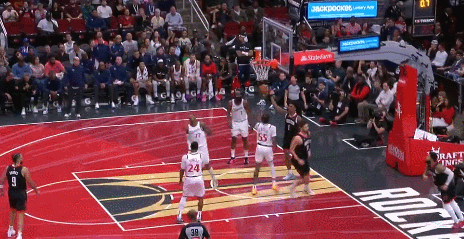 阿门突破哈登过掉三分后拉杆。