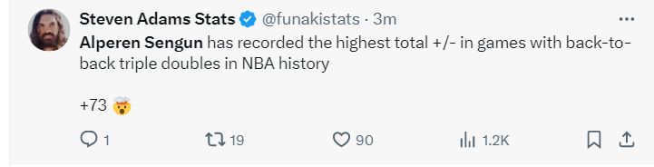 此役之前VS快船申京拿到了16分10篮板10助攻的三双数据,他拿下了生涯第五次三双,申京被誉为是“小约基奇”不是没有道理的,这位土耳其中锋是真的全面无比。