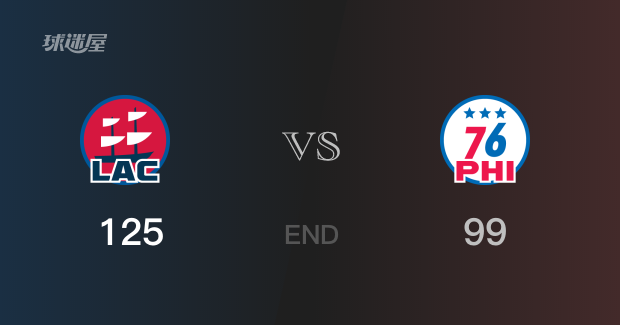 全场比赛结束,最终快船以125-99击败76人,成为获胜方。快船球员哈登砍下全队最高23分,外加2篮板8助攻1抢断、小琼斯18分3篮板2助攻3抢断、祖巴茨16分12篮板4助攻1盖帽,他们是快船队里得分最高的三名球员。