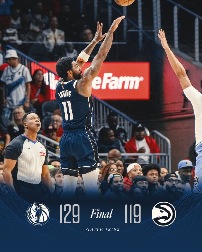 北京时间11月26日,NBA常规赛独行侠客场对阵老鹰,其中独行侠是背靠背第二场,且东契奇与克莱缺席。独行侠在最多落后13分情况下,欧文轰下32分引领全队4人得分20+逆袭,最终独行侠129-119战胜老鹰最近6场5胜,老鹰遭遇3连败。