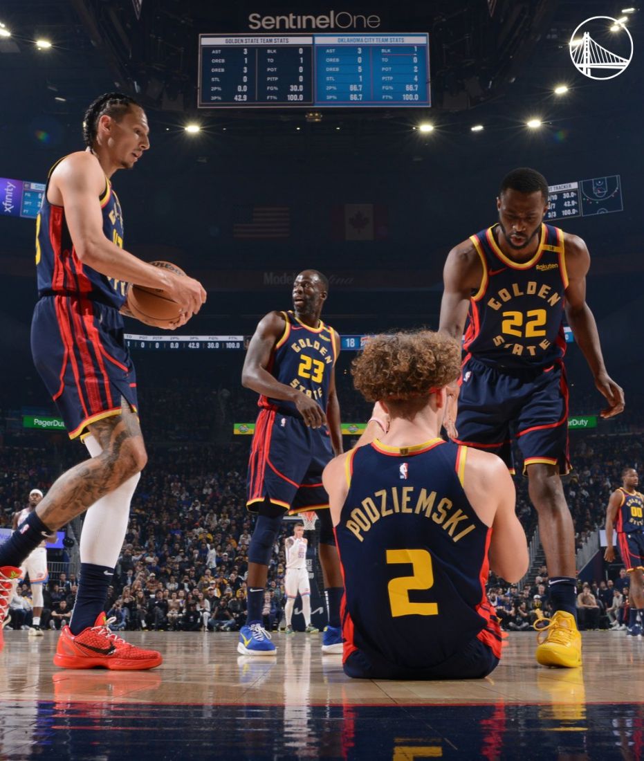 第三节勇士打出一波25-17的高潮两次打停雷霆,哈腾吃了第四次犯规只能被换下,因为勇士突内线太轻松戴姆波特只好换回哈腾,但哈腾篮下已经不敢动了。哈腾还剩1分11秒五犯下场,SGA两罚不中,三节打完勇士只落后1分。