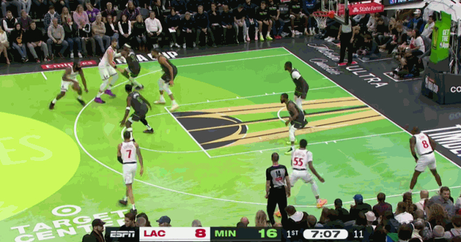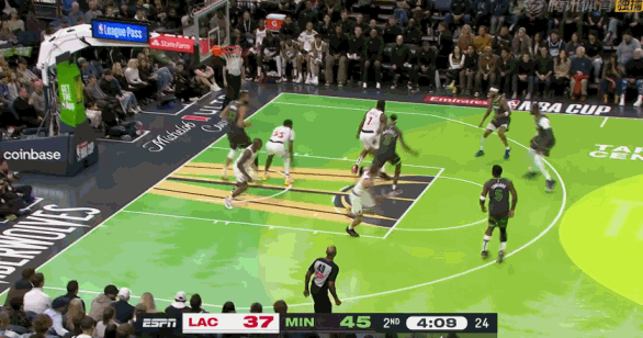 次节,小波特连得4分,但森林狼攻势更猛,亚历山大-沃克补篮得分,还完成扣篮,命中三分,迪文琴佐三分命中,戈贝尔扣篮得分,森林狼已经领先11分。巴图姆、康利互飙三分。哈登连续突破得手,祖巴茨再次扣篮,快船还落后6分。半场结束,森林狼53-47领先快船。上半场,哈登14分4篮板4助攻。