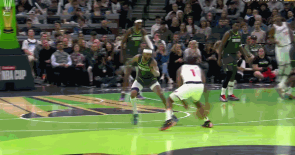 爱德华兹被邓恩拍掉球,裁判没有响哨,华子不满抱怨,领到技犯。