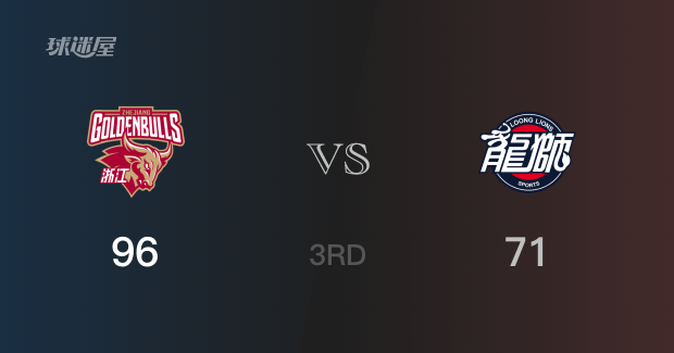 三节战罢,浙江以96-71领先广州25分。